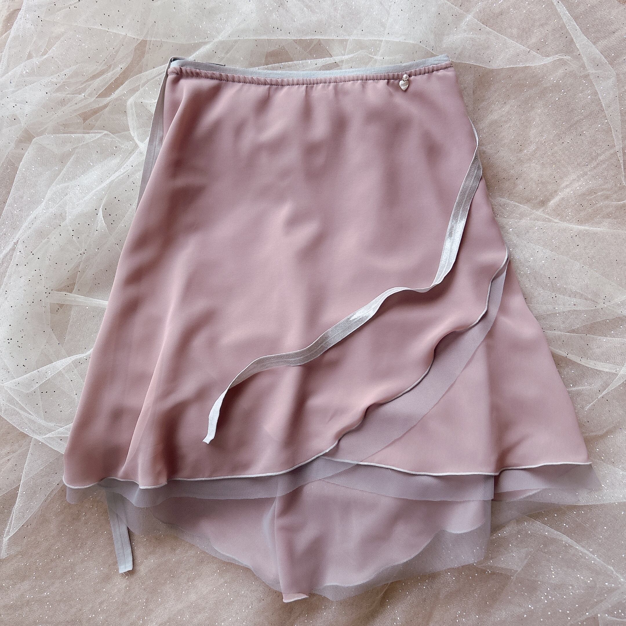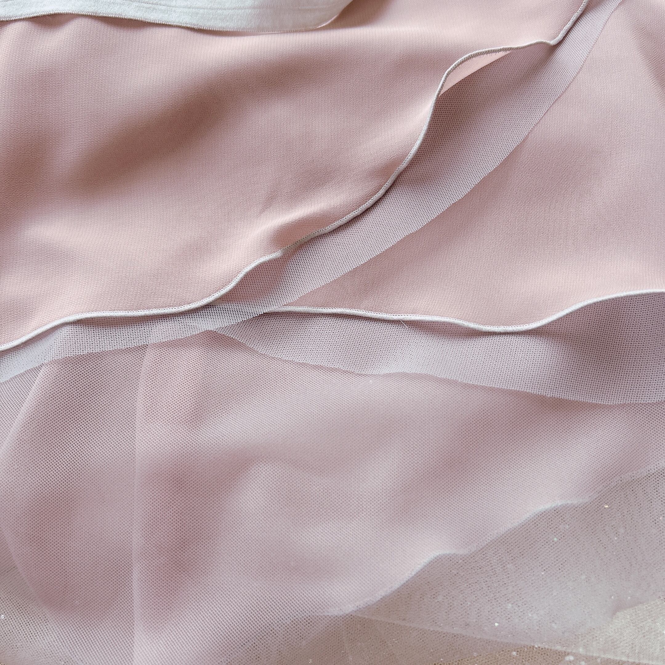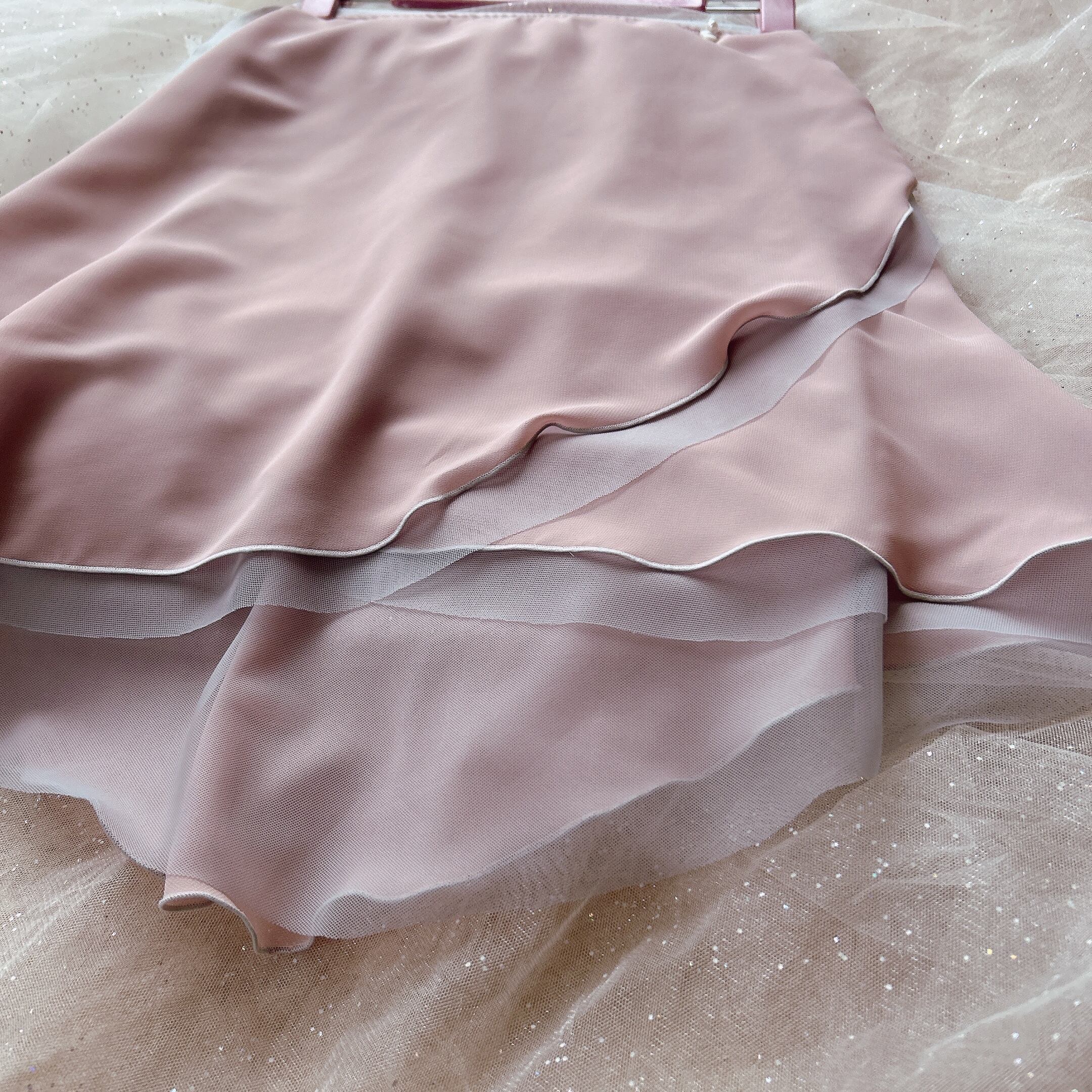 ●グレー色を重ねることでニュアンスのある大人ピンク色になっており、踊ったり、角度や自然光、照明で色んな色の表情が見えるスカートです。グレーとピンク合わせが何とも上品!
