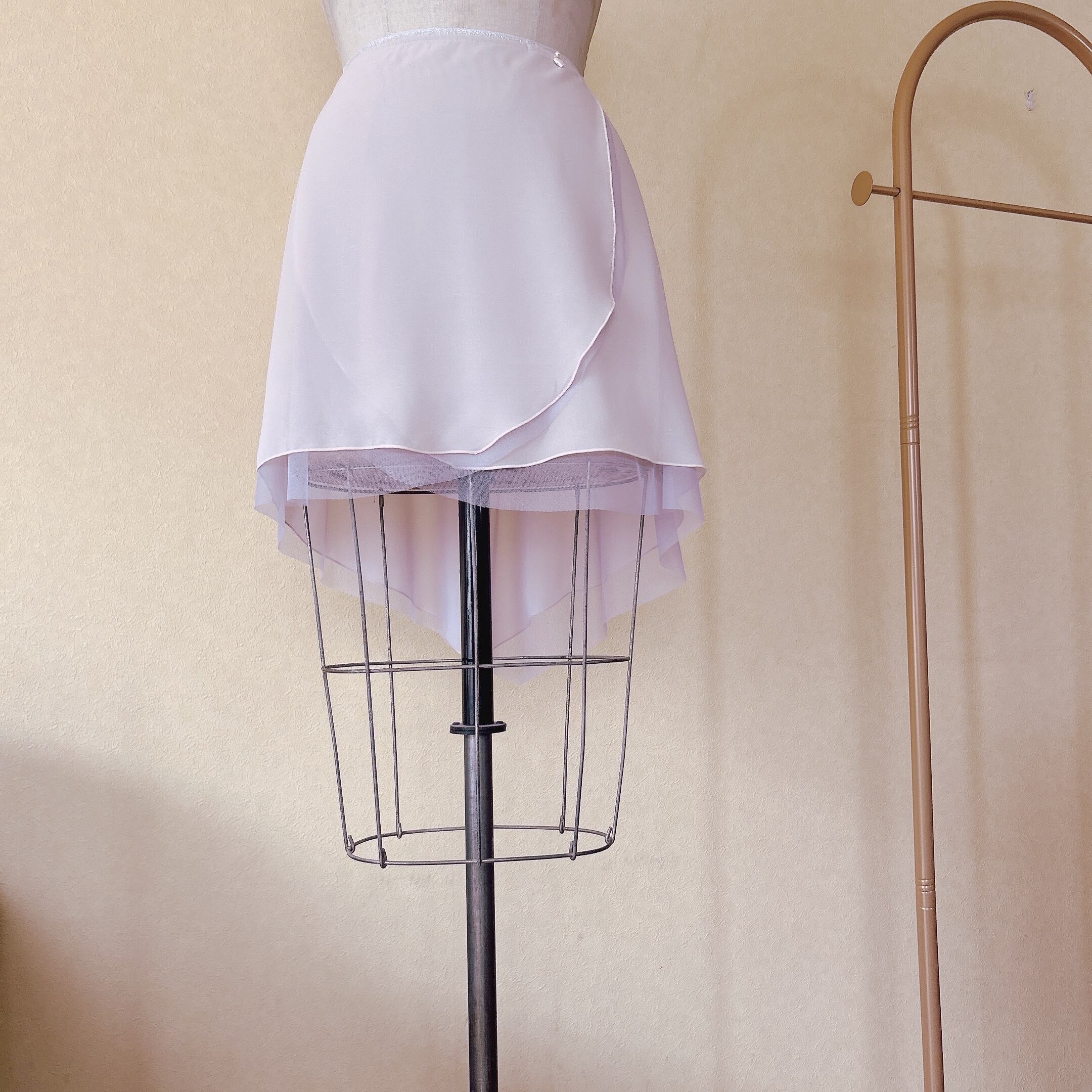 ●ラベンダーを重ねることでニュアンスベージュになっており、踊ったり、角度や自然光、照明で色んな色の表情が見えるスカートです。ラベンダーとベージュ、シルバー合わせが何とも上品!おすすめです!
