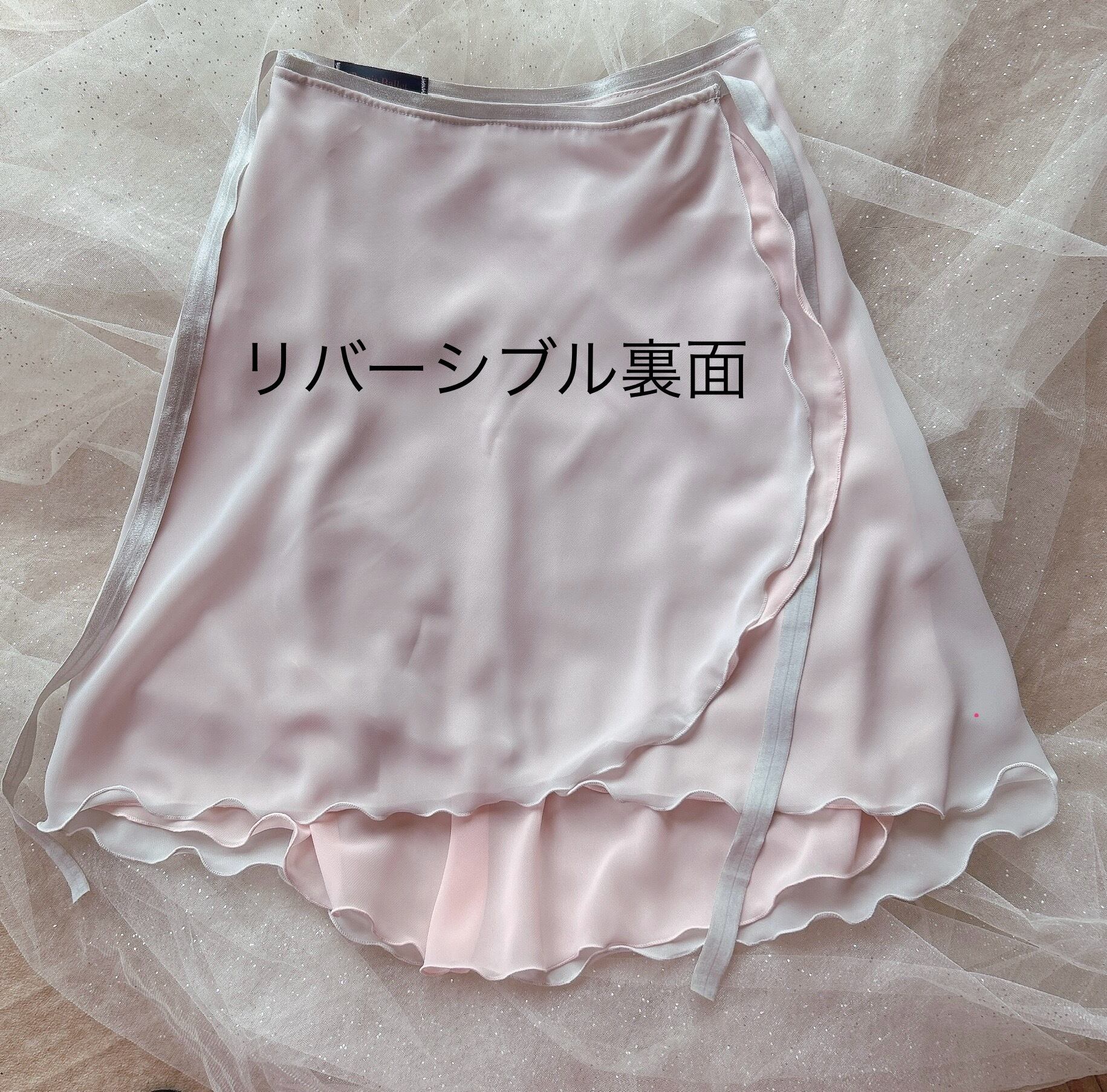 リバーシブルスカートは、表面に柔らかいピンクと裏面に落ち着いた薄いグレーを組み合わせており、シーンに応じて印象を変えることができます。その日の気分やスタイルに合わせて、2通りのコーディネートが楽しめるのが嬉しいポイントです。
