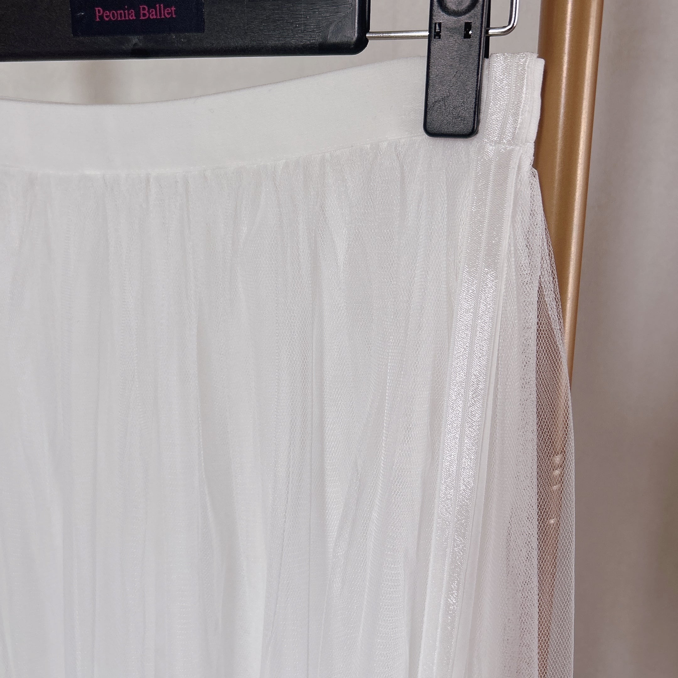 バレエレッスンに履いていくのに着脱しやすく、尚且つ、レッスン前後のお食事やお出かけにも着ていけるような、気分の上がる大人cute! de 上品なチュールスカートです。