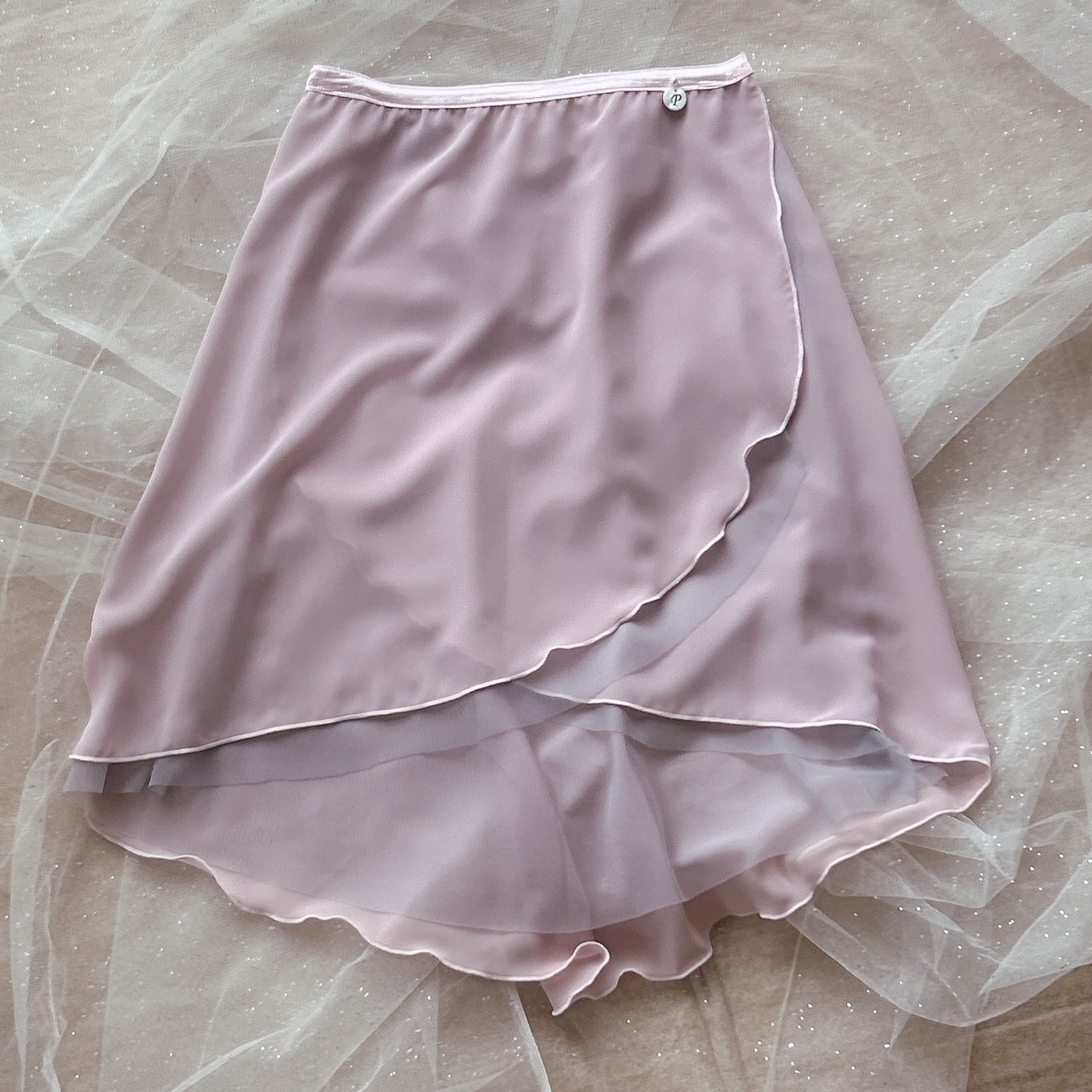 グレーチュールを重ねることでニュアンスのある大人ピンクカラーになっており、踊ったり、角度や自然光、照明で色んな色の表情を見せてくれます。どんな色のレオタードにも合わせ易いです。