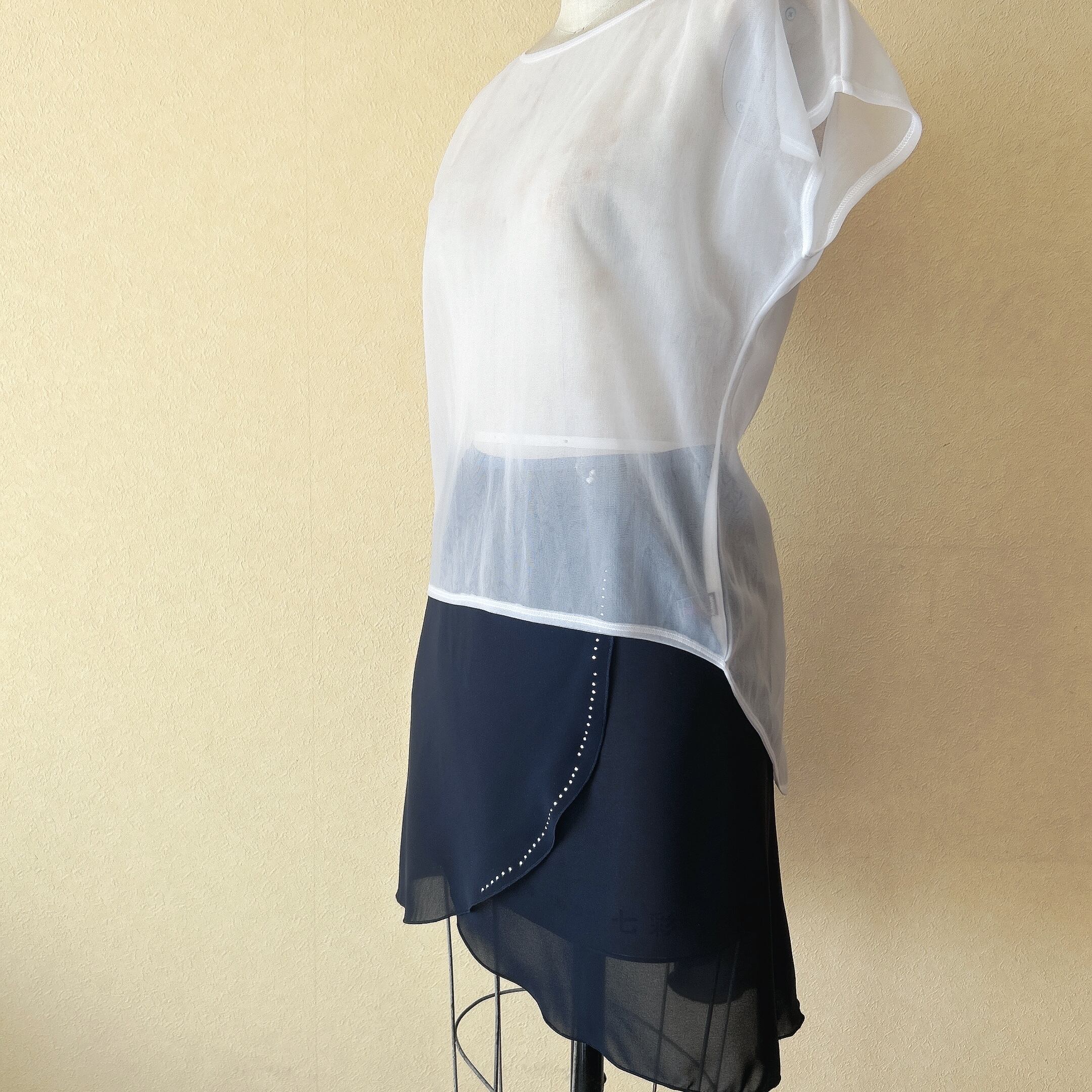 煌めくクリスタル装飾は深いネイビーに映え、動くたびに光を反射してエレガントな存在感を放ちます。深いネイビーは、落ち着きと気品を兼ね備え、どんなシーンでも一際目を引きます。