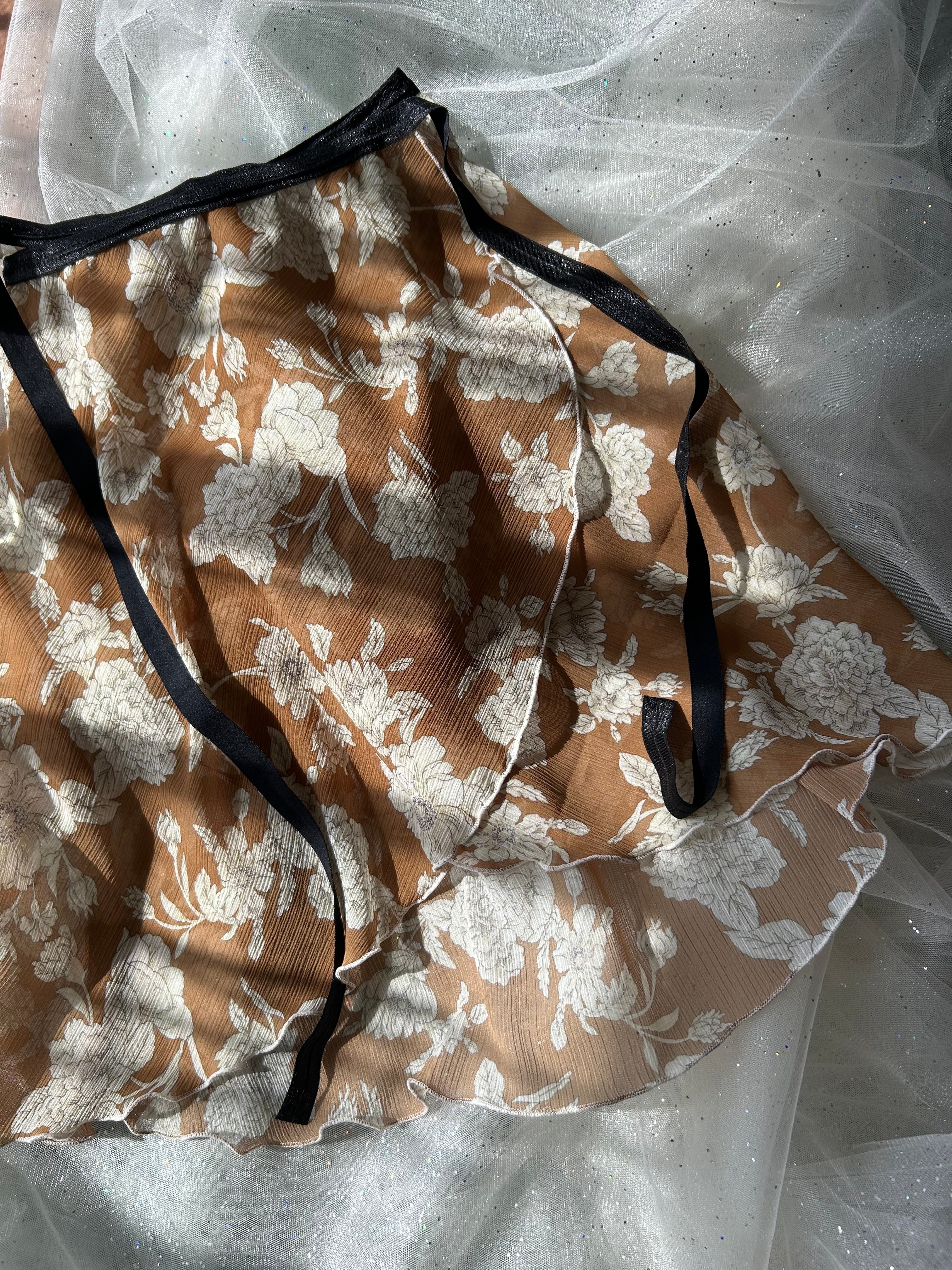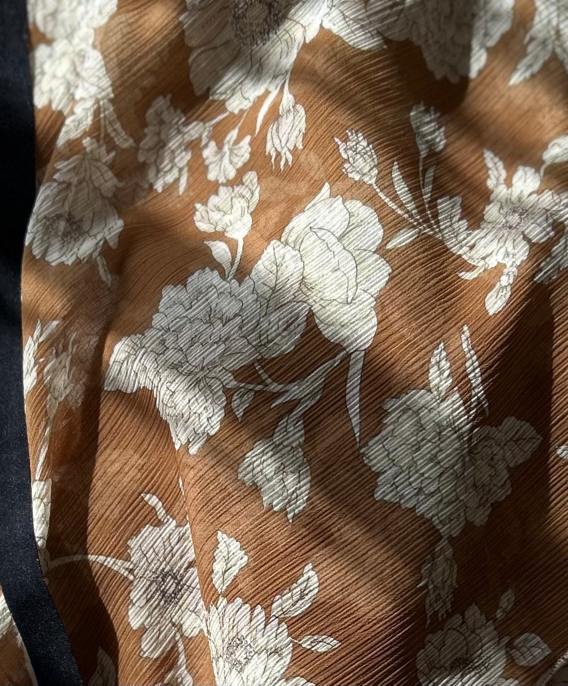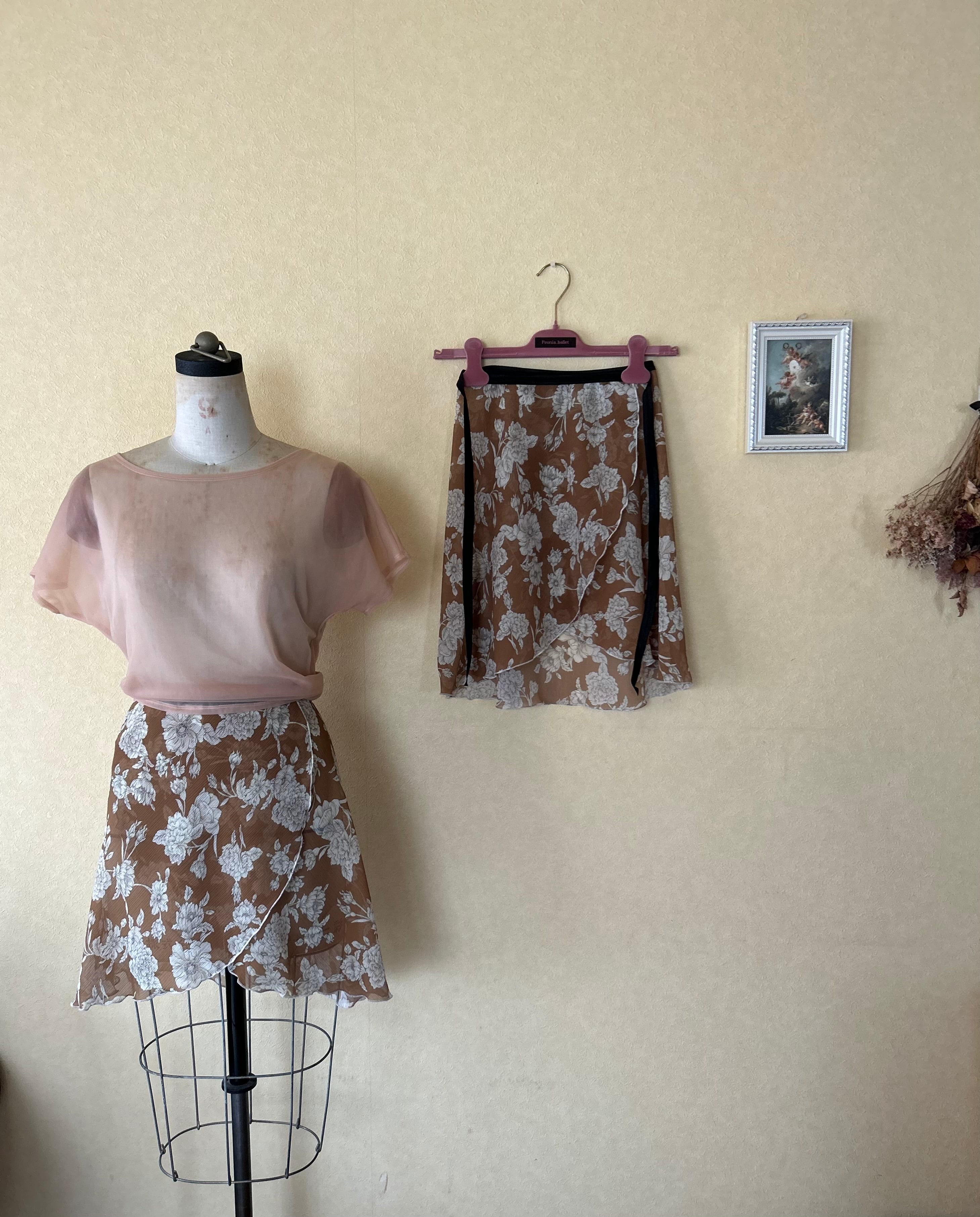 #マロン色ふんわりアンティーク調花柄ー楊柳ジョーゼット】マロン色巻きスカート