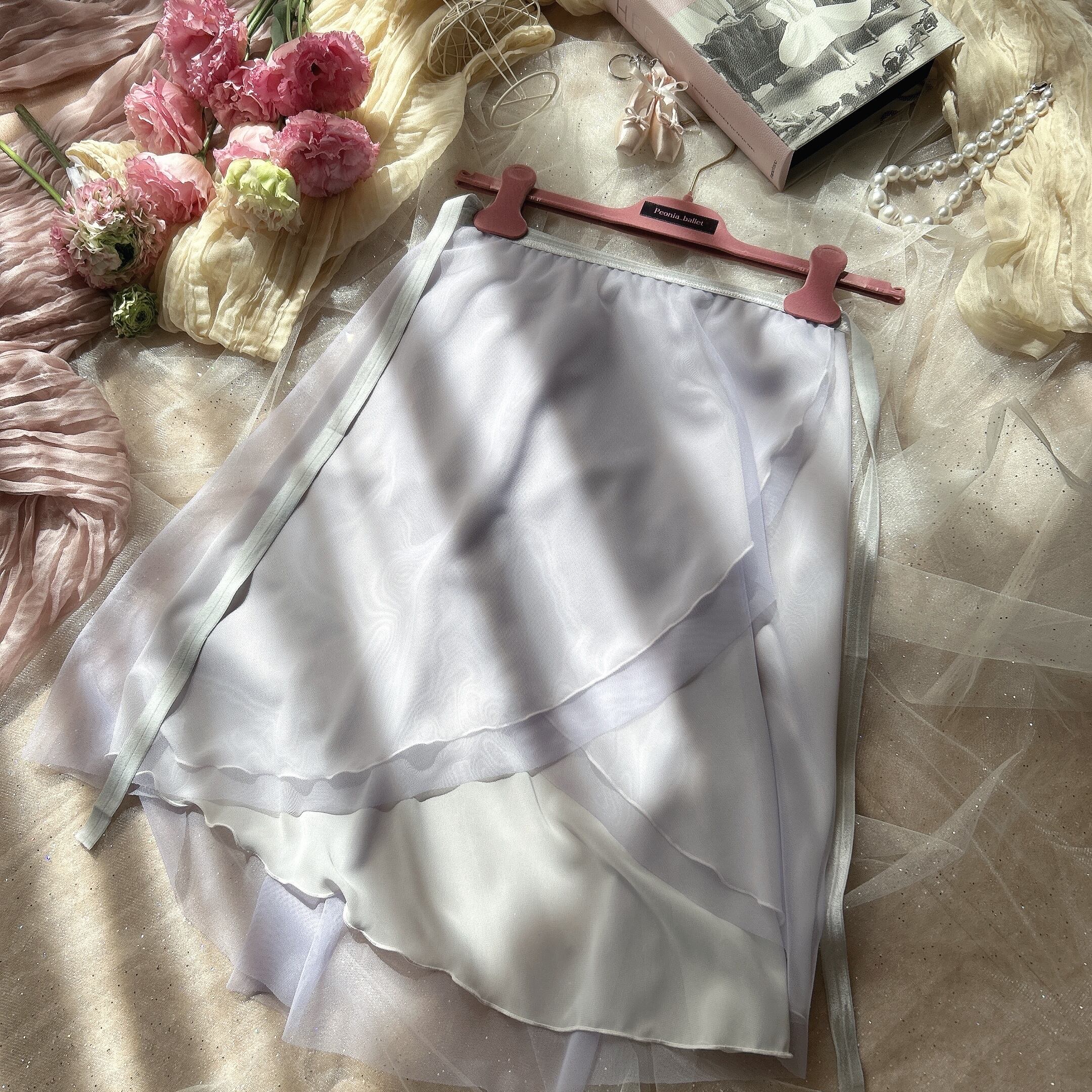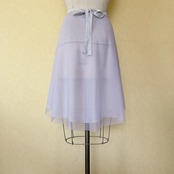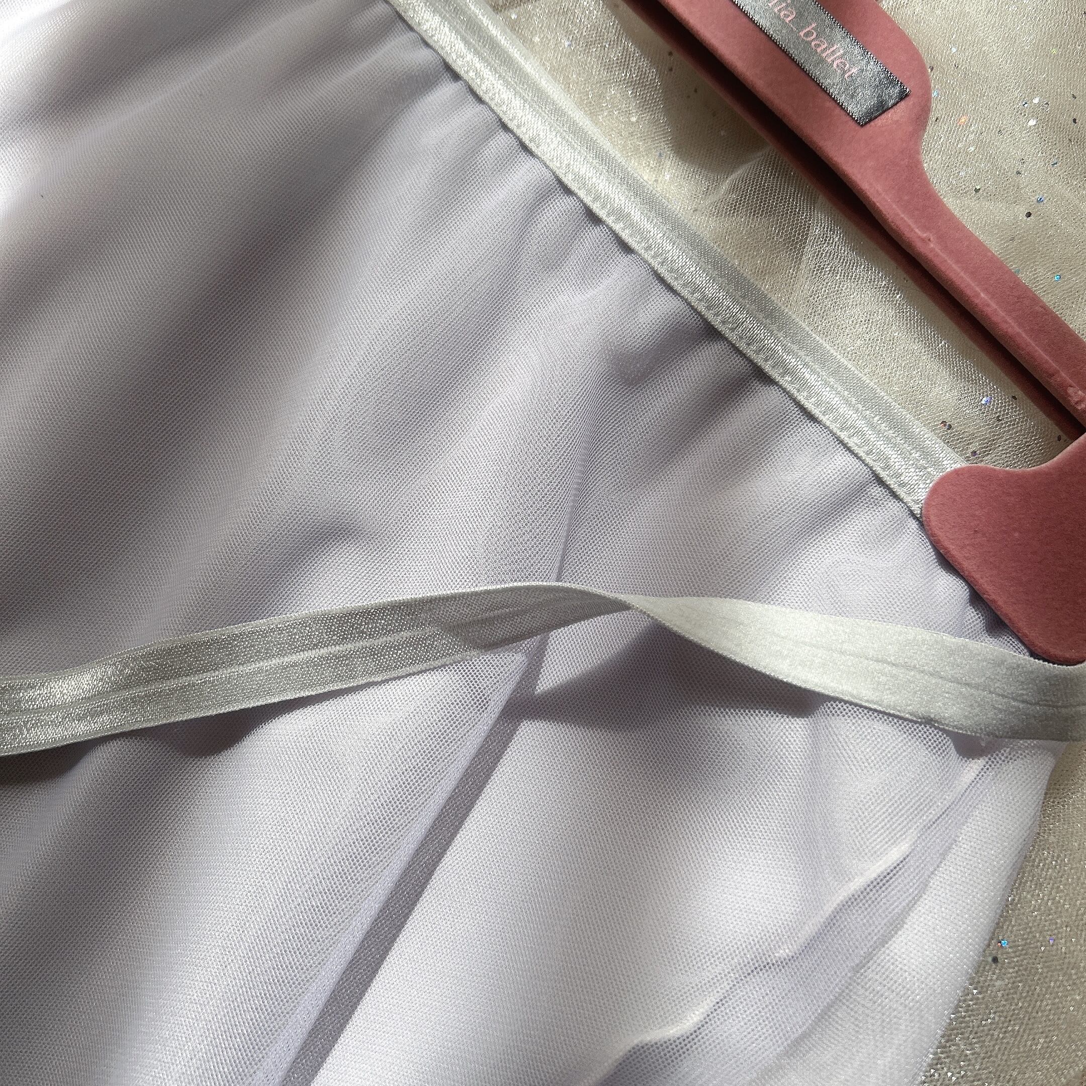 ☑️✨ラベンダー色を重ねることでニュアンスのあるグレー色になっており、踊ったり、角度や自然光、照明で色んな色の表情が見えるスカートです。どんな色のレオタードにも合わせ易いです。パールグレーとラベンダー合わせが何とも上品!