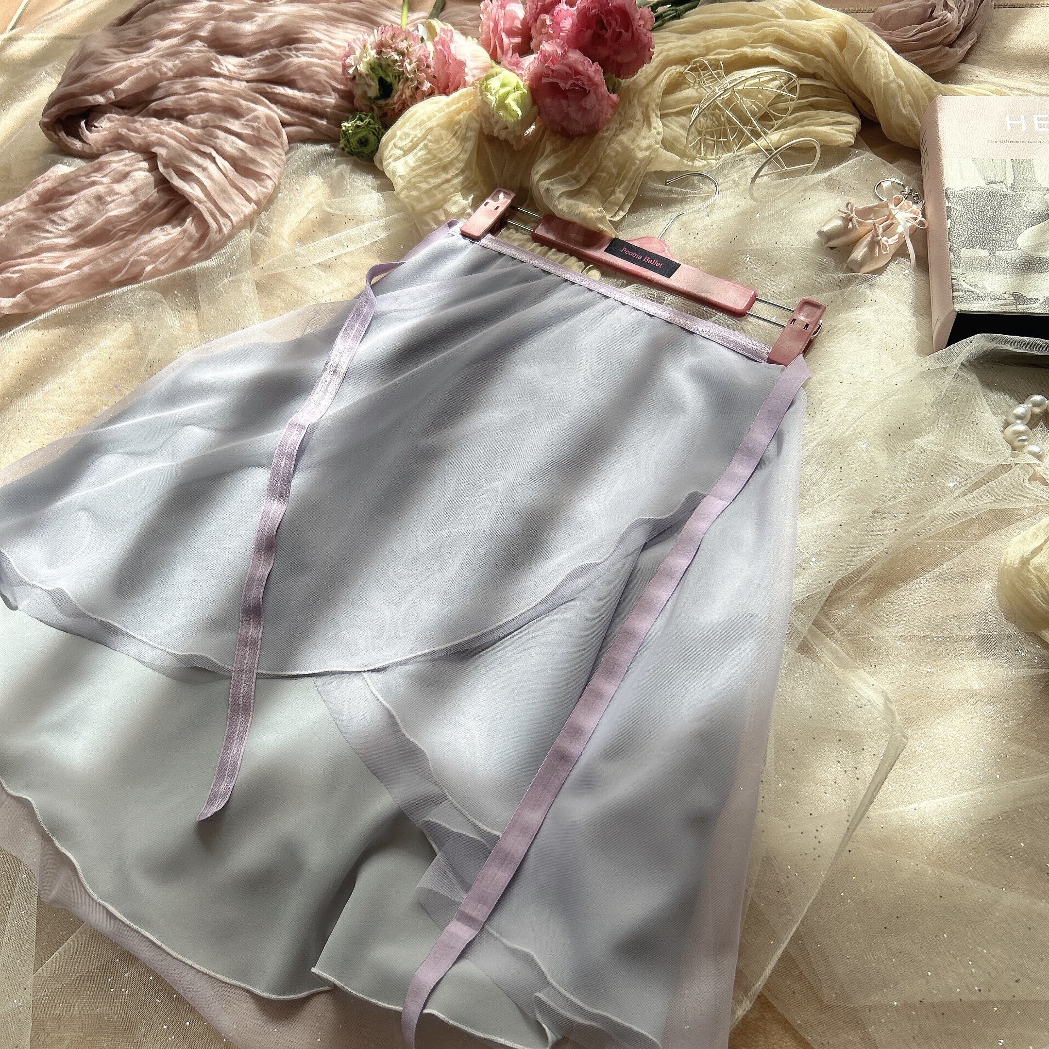 ☑️✨ラベンダー色を重ねることでニュアンスのあるグレー色になっており、踊ったり、角度や自然光、照明で色んな色の表情が見えるスカートです。どんな色のレオタードにも合わせ易いです。フォッググレーとラベンダー合わせが何とも上品!