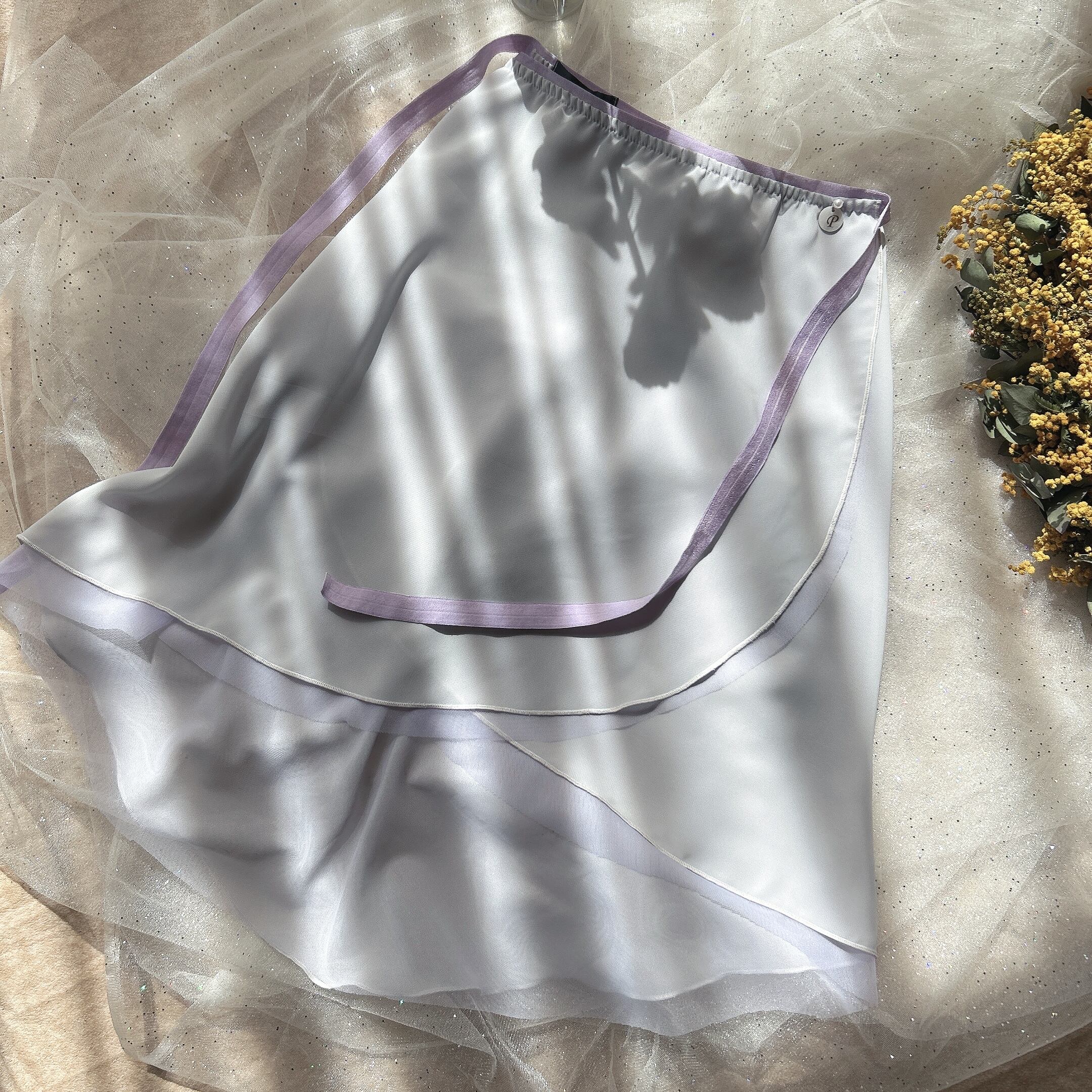 ●ラベンダー色を重ねることでニュアンスのあるグレー色になっており、踊ったり、角度や自然光、照明で色んな色の表情が見えるスカートは何とも上品!